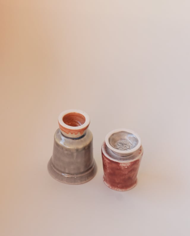 サイズ:左側(青):W75mm×H95mm程度、容量100ml程度、右側(ピンク):W50mm×H80mm程度、容量80ml程度、(それぞれ個体差がございます。)