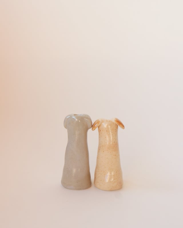 人差し指ぐらいの小さなサイズのフラワーベースです。それぞれ違った表情がかわいいです。