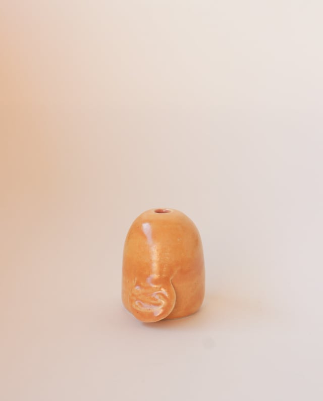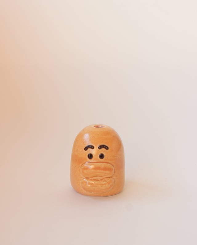おとぼけた表情のかわいいフラワーベースです。卵ぐらいのサイズ感です。
