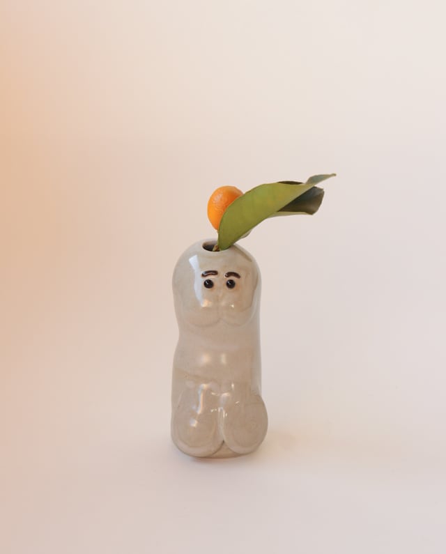 何かやってくれそうな表情のかわいいフラワーベースです。デスク周りに置いといても良さそうです。