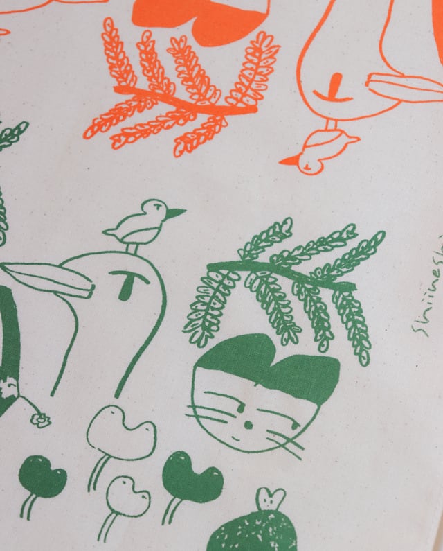 ・シルクスクリーン印刷にて一つ一つ手仕事で作っております。色合いや擦り具合に個体差がございます。