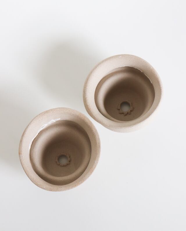 散歩の途中で見つけた土をブレンドして作った植木鉢です。ひとつひとつ違う形をしています。