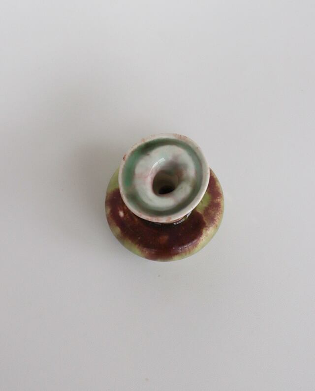 果実のような小さなフラワーベースです。それぞれ違った表情です。流れる色が植物のようです。